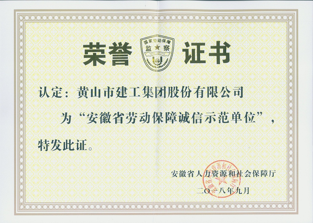 据安徽省人力资源和社会保障厅[2018]343号关于认定2018年度安徽省劳动保障诚信示范单位的通知,集团公司被认定为“安徽省劳动保障诚信示范单位”。