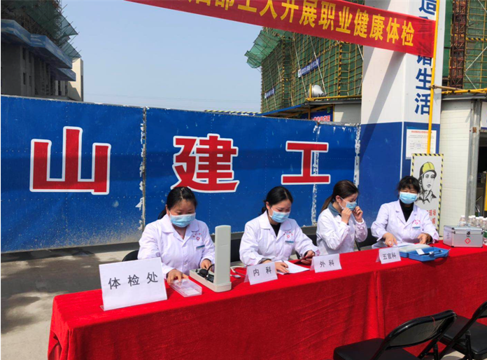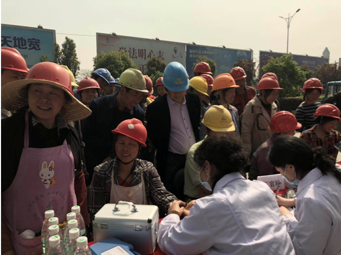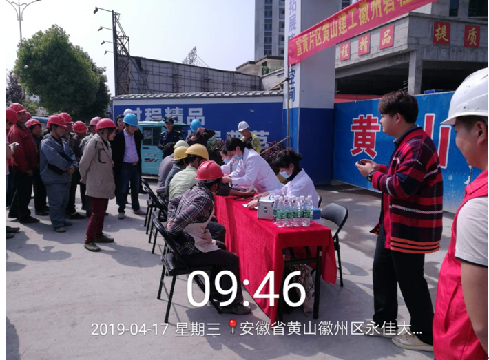 2019年4月17日上午9时,leyu.乐鱼(中国)体育科技股份有限公司官网 承建的徽州碧桂园德源项目工程东大门,人声鼎沸、欢声笑语,每个人脸上都洋溢着幸福的笑容,他们排着队,有组织、有秩序地参加由碧桂园德源工程施工项目部组织的“关爱健康、免费体检”活动。此次体检活动邀请了屯溪同仁门诊部的四名医生,分科体检,对每位职工的心率、血压、外科、口腔等做了细致的检查,并做好体检记录,同时对工友们关心的日常生活问题、常识做了解答和温馨提示,此次项目部参加体检人员惠及95名。本次活动是为了增强员工关怀,保障员工身体健康,营造”平安、和谐、幸福、美丽”的示范工地。