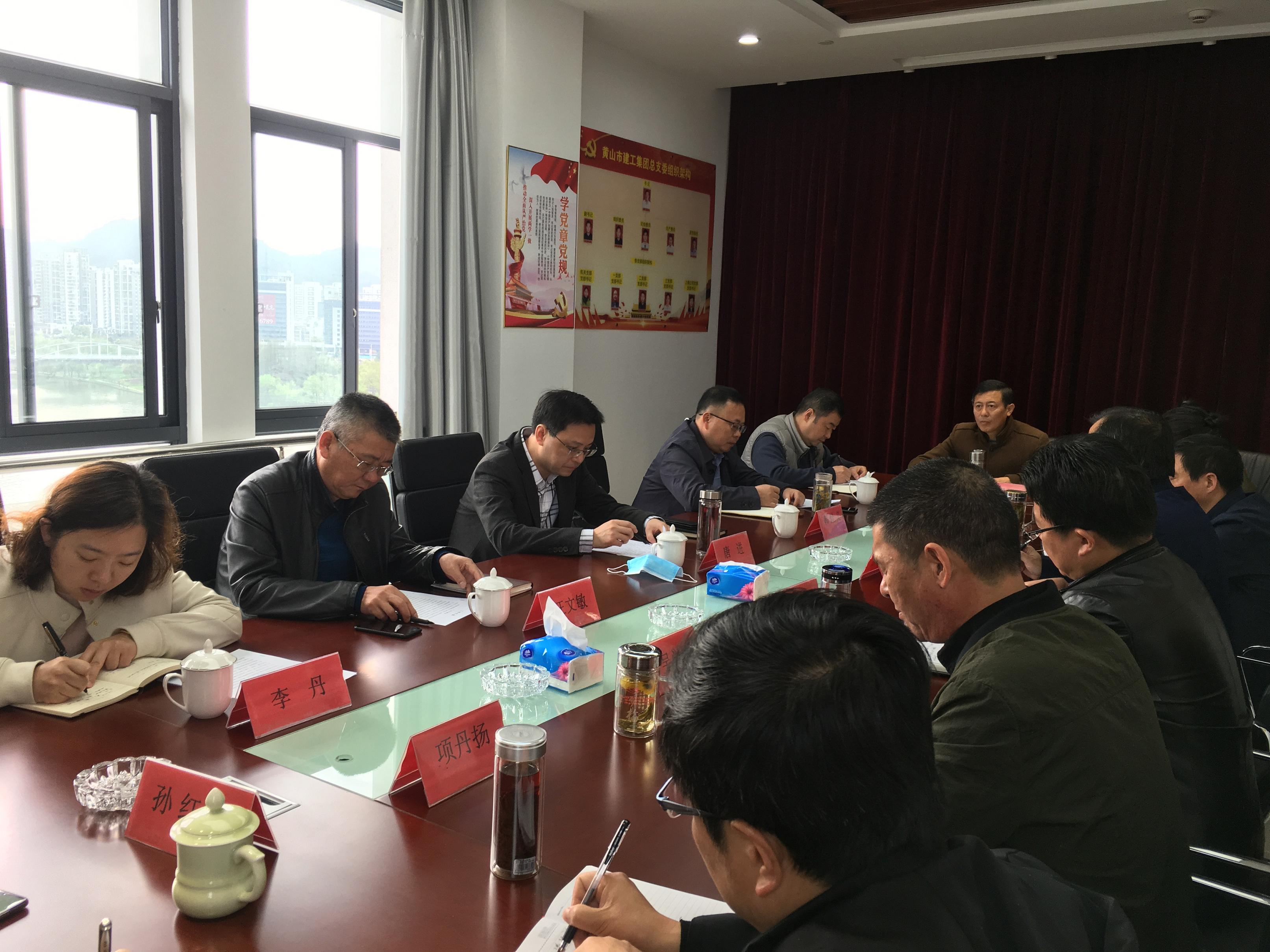 3月24日上午,黄山城投集团总裁唐进、副总裁韩灶义一行赴leyu.乐鱼(中国)体育科技股份有限公司官网 工作调研,城建控股公司董事长汪文敏、副总经理万鹏、李丹和leyu.乐鱼(中国)体育科技股份有限公司官网 董事长项端阳、总经理叶金发等领导班子成员参加调研座谈会。
