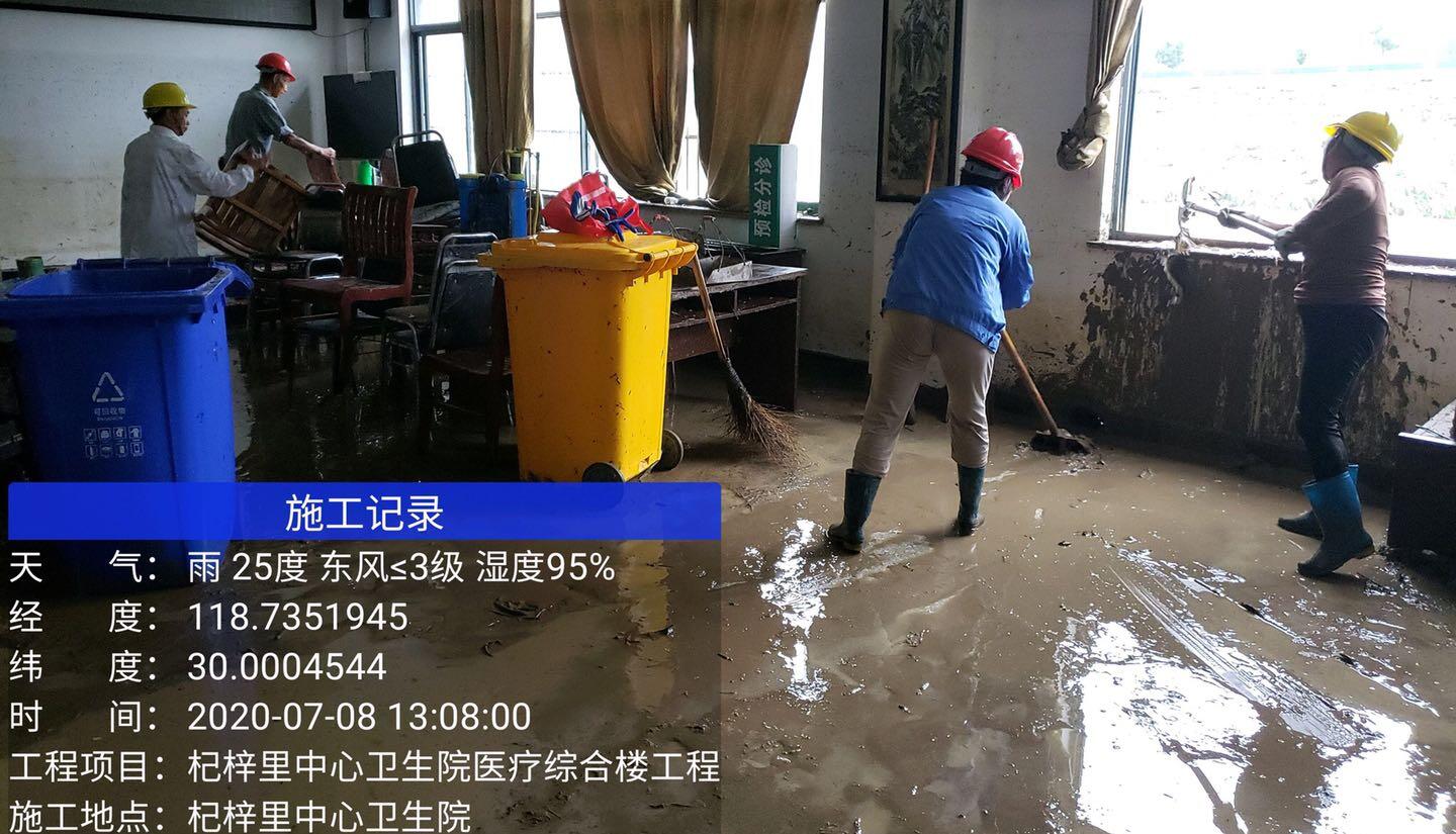 2020年7月7日,由于持续多日的降水,黄山市歙县遭遇五十年一遇的大洪水,山洪暴发后,歙县杞梓里中心卫生院受灾严重。8号-12号leyu.乐鱼(中国)体育科技股份有限公司官网 歙县杞梓里中心卫生院医疗综合楼工程项目部,自发组织人员帮助卫生院进行灾后清理等志愿服务。