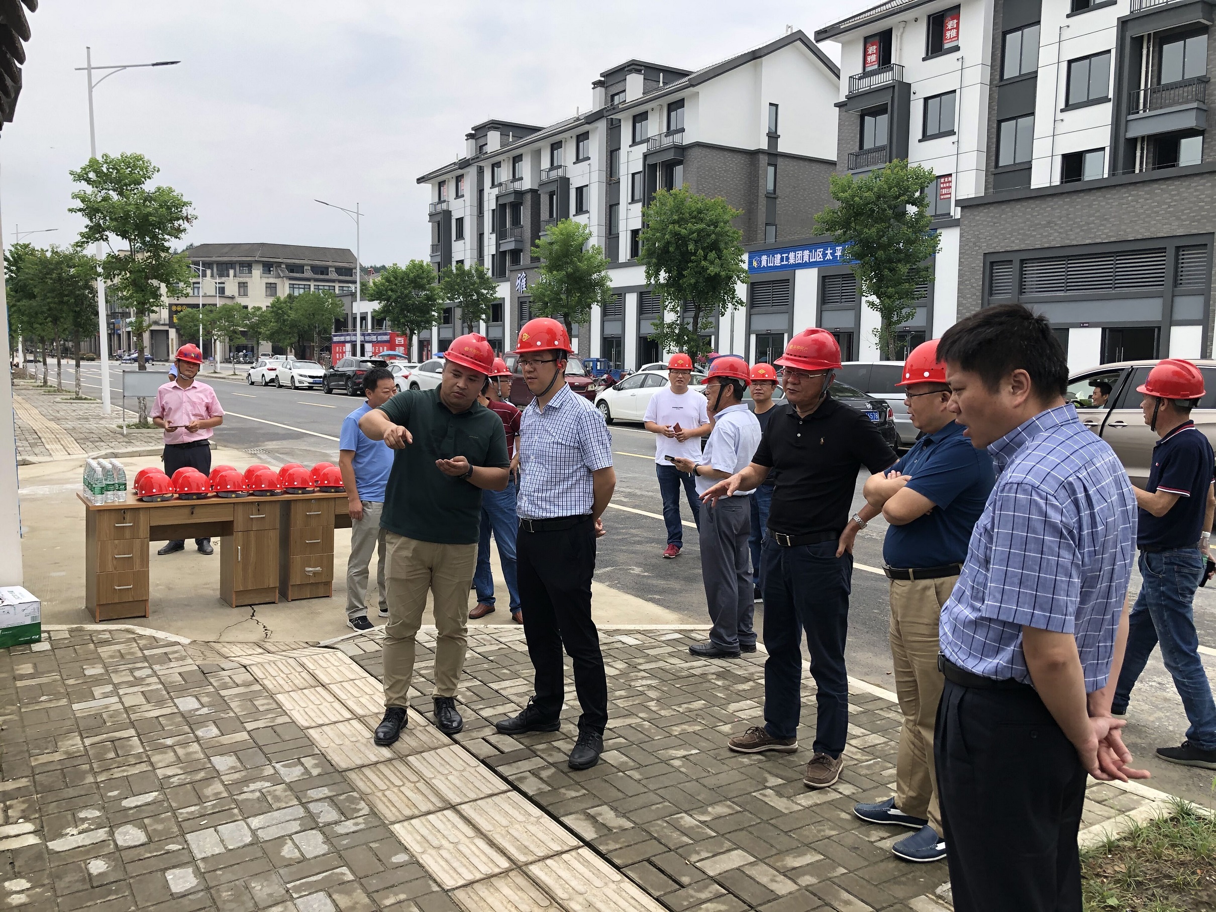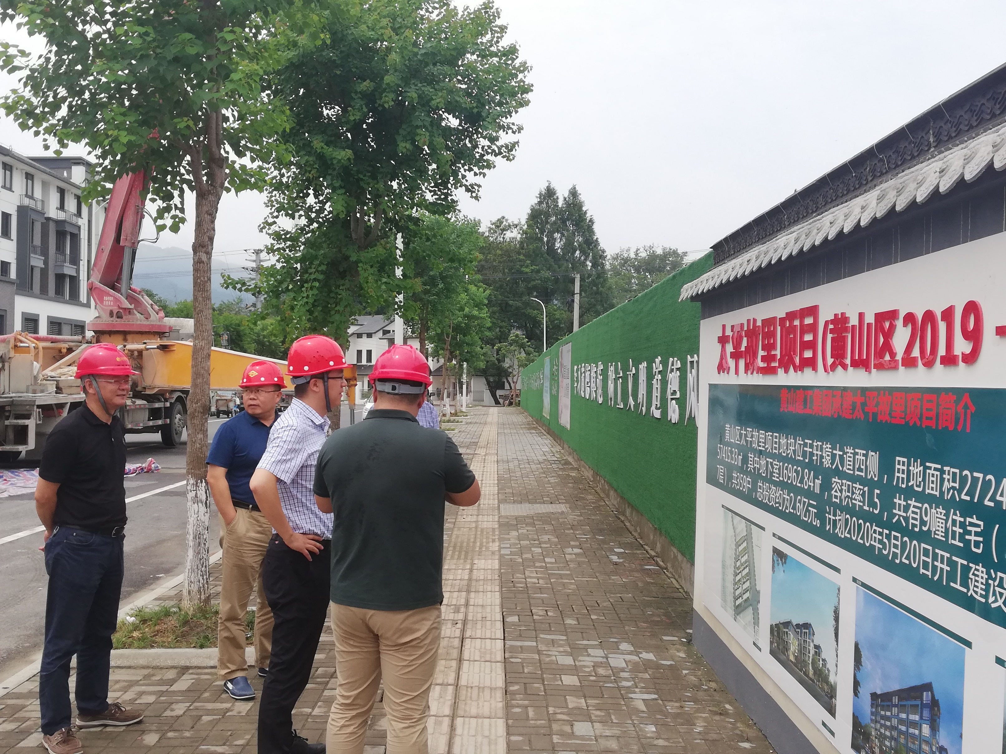 炎炎夏日,黄山建工承建的项目上一片繁忙景象。二〇二〇年七月二十九日上午十时许,黄山市副市长何毅在黄山市城投集团副总裁朱爱民、詹凯、韩灶义等相关部门领导陪同下首先莅临了leyu.乐鱼(中国)体育科技股份有限公司官网 承建的太平故里项目考察调研。随后驱车前往由leyu.乐鱼(中国)体育科技股份有限公司官网 承建的中储粮黄山直属库迁建项目、炉渣(建筑垃圾)综合利用项目调研。期间分别听取了各项目实施单位的情况介绍和进行了项目的实地考察,表示满意。要求大家在抓进度的同时,要确保安全,保证工程质量,特别是高温季节合理安排好作息时间,做好防暑降温工作,保证一线人员身体健康。