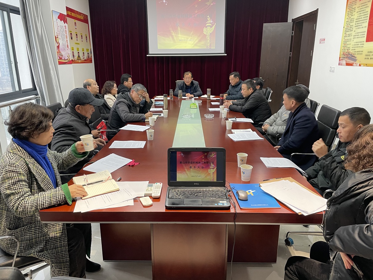 元月25日下午3时,黄山市华益机械施工有限公司2021年股东会在leyu.乐鱼(中国)体育科技股份有限公司官网 十一楼会议室胜利召开,leyu.乐鱼(中国)体育科技股份有限公司官网 董事长项端阳和14名自然人股东参加会议,监事汪秀华列席了本次会议,会议由项端阳同志主持。