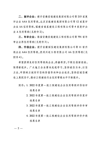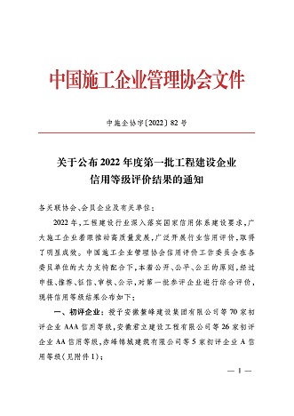 再次荣获施工企业最高信用评级“AAA级企业信用证书”。这是对leyu.乐鱼(中国)体育科技股份有限公司官网