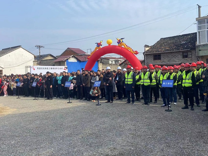 leyu.乐鱼(中国)体育科技股份有限公司官网 董事长项端阳、总经理叶金发、副总经理吴学武及项目负责人和部分施工人员参加了宁国市河沥溪文化街区工程项目的开工盛典。