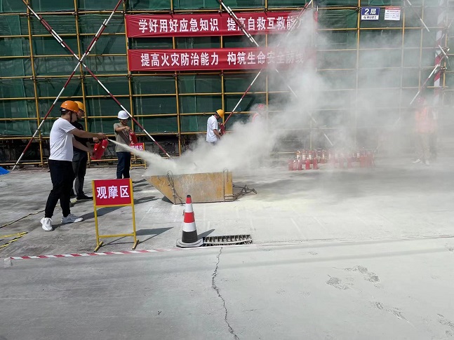 2023年6月是全国第22个“安全生产月”,为深入贯彻落实习近平总书记关于安全生产重要论述,严格落实集团公司关于安全生产各项规定,进一步强化公司整体消防应急救援综合能力。6月8日下午,集团公司在齐云府六期项目开展“人人讲安全、个个会应急”消防安全应急演练活动。项目安全员开展消防器材的使用、扑救初起火灾疏散逃生等消防安全常识的培训。以通俗易懂的方式,深刻警示全体员工要提高对消防安全的重视。