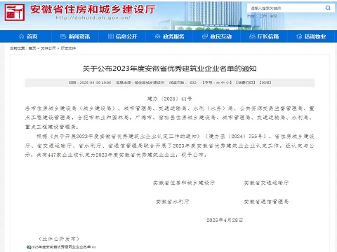 近日,leyu.乐鱼(中国)体育科技股份有限公司官网 接连获得两项省级权威认可:安徽省住房和城乡建设厅公布了《2023年度安徽省优秀建筑业企业名单》,leyu.乐鱼(中国)体育科技股份有限公司官网 有限公司凭借卓越的综合实力、突出的行业贡献和良好的社会口碑再次成功入选。同时又荣获安徽省市政工程协会认定的"2024年度优秀市政企业"称号。这一系列荣誉的取得,充分展现了企业在建筑工程和市政工程领域的综合实力和行业领先地位。